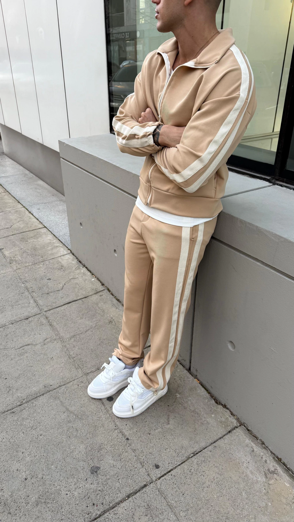 confeccionado en twill sastrero, una tela ultra premium que garantiza firmeza y caída perfecta para un look impecable. Su fit relajado y las tiras bordadas en mangas y laterales aportan detalles únicos que marcan la diferencia. Ideal para quienes buscan comodidad sin perder estilo en su día a día. Un conjunto que eleva tu streetwear a otro nivel.